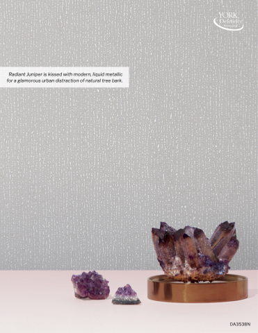 Radiant Juniper is kissed with modern, liquid metallic for a glamorous urban distraction of natural tree bark. DA3538N