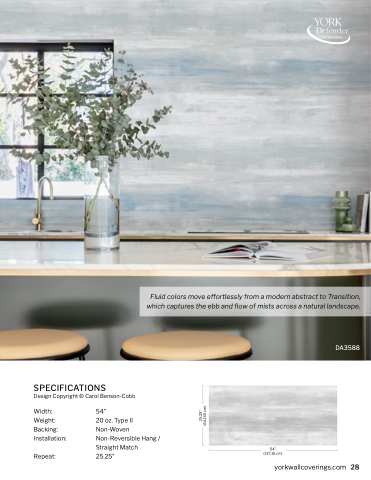 Fluid colors move effortlessly from a modern abstract to Transition, which captures the ebb and flow of mists across a natural landscape.