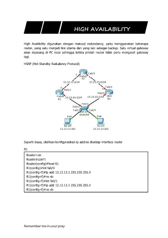 High Availibility digunakan dengan maksud redundancy, yaitu menggunakan beberapa