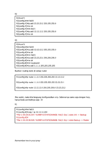 Jika sudah, maka kita langsung konfigurasikan vrrp. Sebenarnya sama saja dengan hsrp,