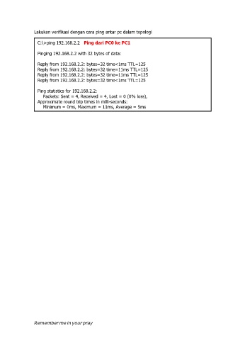 Lakukan verifikasi dengan cara ping antar pc dalam topologi