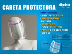 CARETA PROTECTORA CARACTERISTICAS: • ACETATO DE 10 MICRAS • BANDA NON-WOVEN AJUSTABLE. • RE-UTILIZABLE • FÁCIL DE DESINFECTAR. • PROTEGE OJOS, NARIZ Y BOCA. • MEDIDAS: CLAVE EAN 13 0181015901 7502287834109 31 centimetros 25 centimetros