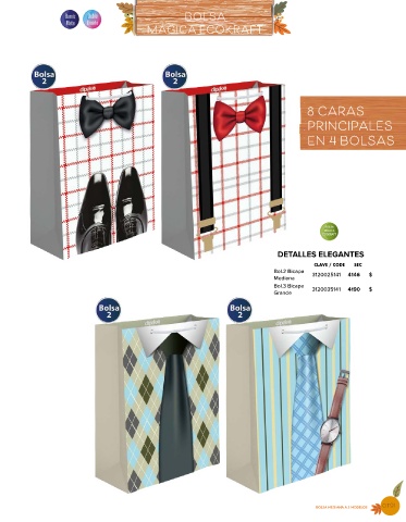 BOLSA MÁGICA ECOKRAFT 8 CARAS PRINCIPALES EN 4 BOLSAS DETALLES ELEGANTES CLAVE / CODE SEC Bol.2 Bicapa 3120025141 4146 $ Mediana Bol.3 Bicapa 3120035141 4190 $ Grande BOLSA MEDIANA A 3 MODELOS ot91