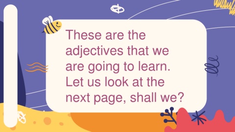 These are the adjectives that we are going to learn. Let us look at the next page, shall we?