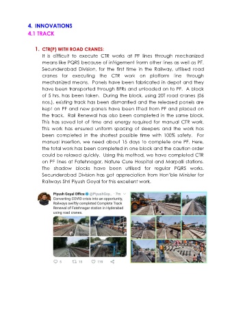 Secunderabad Division has got appreciation from Hon’ble Minister for
