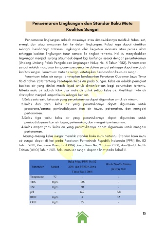 kualitas sungai. Penentuan mutu air sungai ditetapkan berdasarkan kelas air sungai.