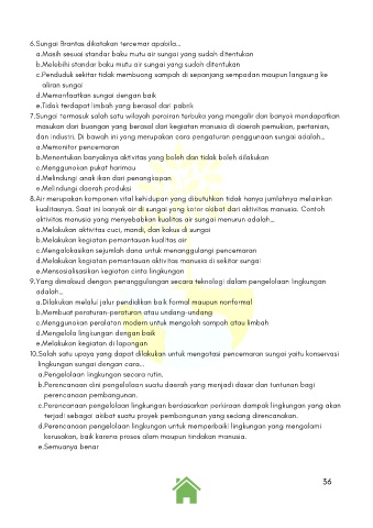 10.Salah satu upaya yang dapat dilakukan untuk mengatasi pencemaran sungai yaitu konservasi