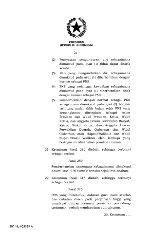 22. Ketentuan Pasal 315 diubah, sehingga berbunyi