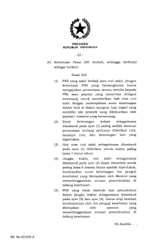 (1) PNS yang sakit berhak atas cuti sakit, dengan