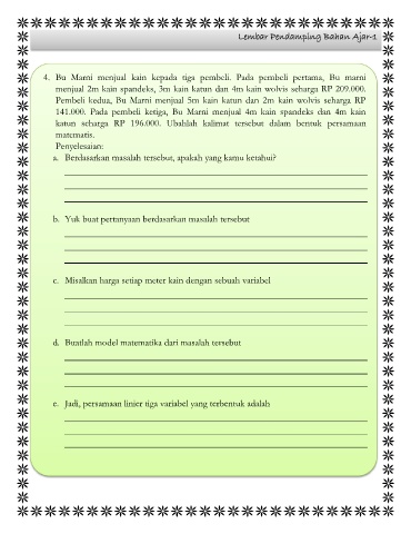 4. Bu Marni menjual kain kepada tiga pembeli. Pada pembeli pertama, Bu marni