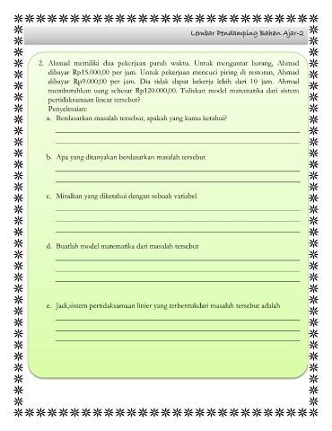 2. Ahmad memiliki dua pekerjaan paruh waktu. Untuk mengantar barang, Ahmad