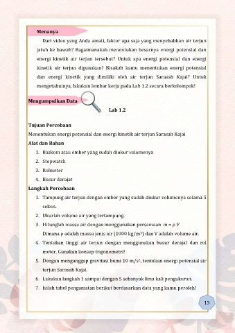 Menentukan energi potensial dan energi kinetik air terjun Sarasah Kajai