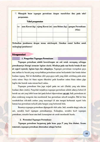7. Hitunglah besar tegangan permukaan dengan menuliskan data pada tabel