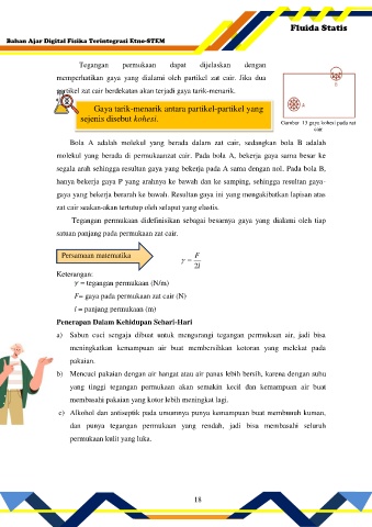 memperhatikan gaya yang dialami oleh partikel zat cair. Jika dua