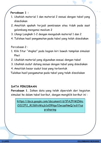 Percobaan 1. Isikan data yang telah diperoleh dari kegiatan