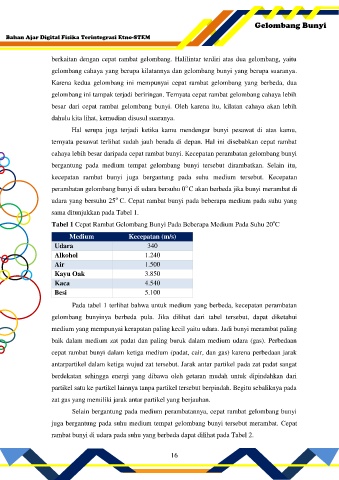Tabel 1 Cepat Rambat Gelombang Bunyi Pada Beberapa Medium Pada Suhu 20 C