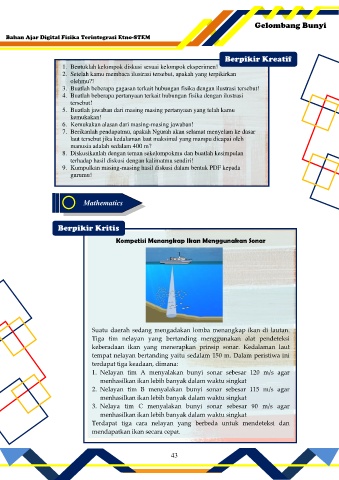 1. Nelayan tim A menyalakan bunyi sonar sebesar 120 m/s agar