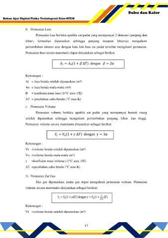 pertambahan ukuran atau dengan kata lain luas zat padat tersebut mengalami pemuaian.