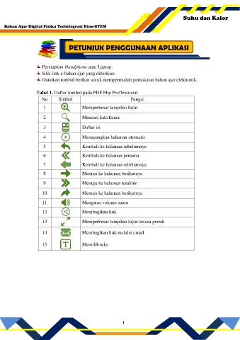 Tabel 1. Daftar tombol pada PDF Flip Proffessional