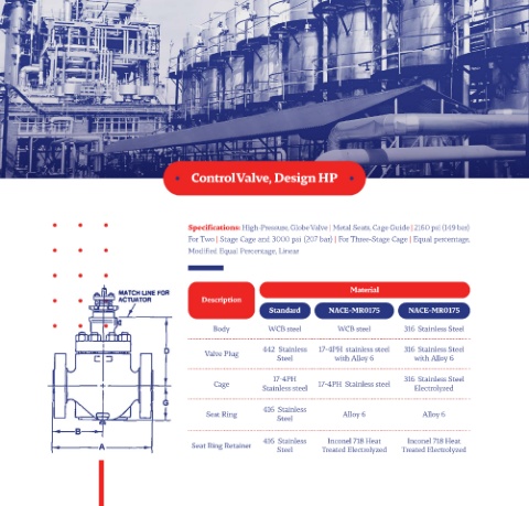 Specifications: High-Pressure, Globe Valve | Metal Seats, Cage Guide | 2160 psi (149 bar)
