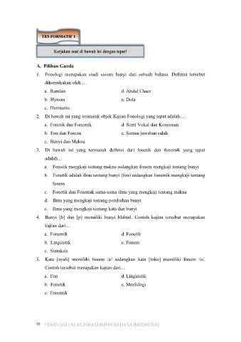 2. Di bawah ini yang termasuk objek Kajian Fonologi yang tepat adalah….