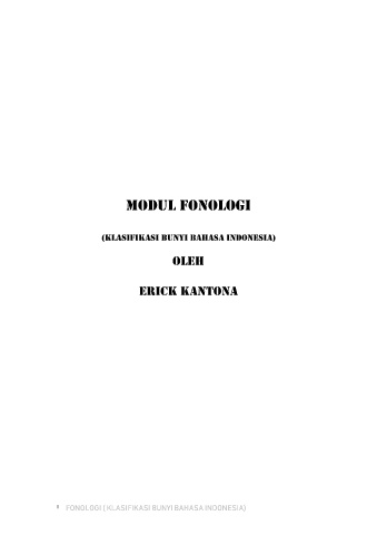 MODUL FONOLOGI (KLASIFIKASI BUNYI BAHASA INDONESIA) OLEH ERICK KANTONA I FONOLOGI ( KLASIFIKASI BUNYI BAHASA INDONESIA)