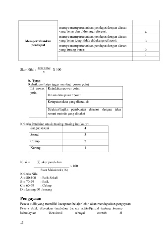 Kriteria Penilaian untuk masing-masing indikator :
