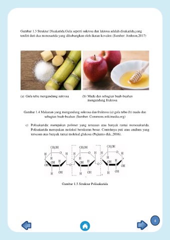 (a) Gula tebu mengandung sukrosa (b) Madu dan sebagian buah-buahan