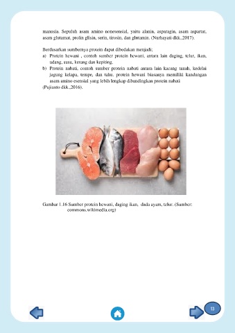 Gambar 1.16 Sumber protein hewani, daging ikan, dada ayam, telur. (Sumber: