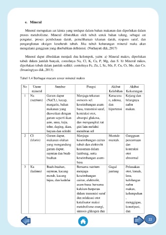 Tabel 1.4 Berbagai macam unsur mineral makro