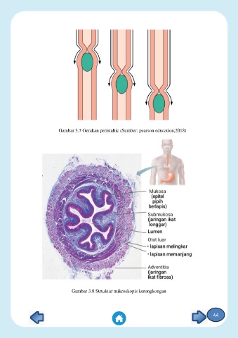 Gambar 3.7 Gerakan peristaltic (Sumber: pearson education,2018) Gambar 3.8 Strtuktur mikroskopis kerongkongan 44