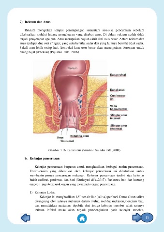 terjadi penyerapan apa pun. Anus merupakan bagian akhir dari usus besar. Antara rektum dan