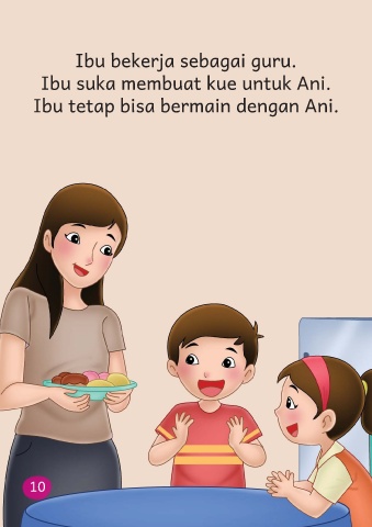 Ibu bekerja sebagai guru. Ibu suka membuat kue untuk Ani. Ibu tetap bisa bermain dengan Ani. 10