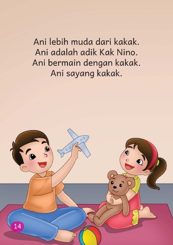 Ani lebih muda dari kakak. Ani adalah adik Kak Nino. Ani bermain dengan kakak. Ani sayang kakak. 14