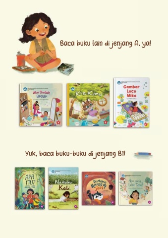 Baca buku lain di jenjang A, ya! Yuk, baca buku-buku di jenjang B1!