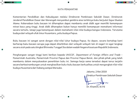 Jenderal Pendidikan Dasar dan Menengah menyambut gembira atas terbitnya buku berjudul Sayur Buatan