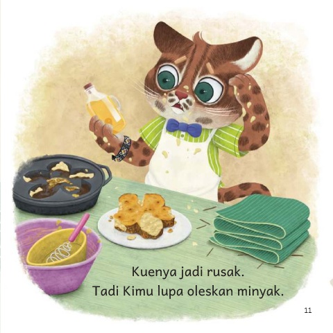 Kuenya jadi rusak. Kuenya lengket! Tadi Kimu lupa oleskan minyak. 10 11