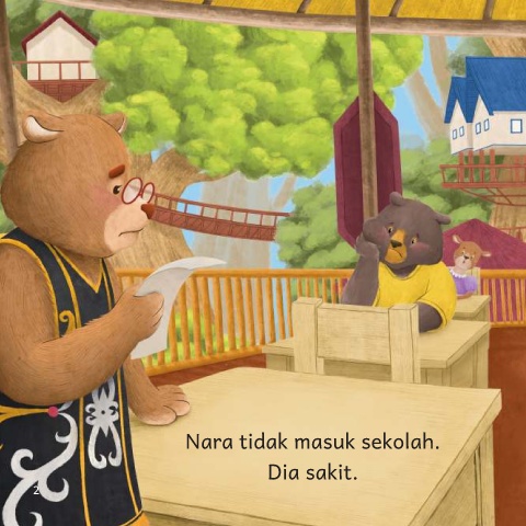 Nara tidak masuk sekolah. Kimu cemas. Dia sakit. Kimu ingin ke rumah Nara. 2 3