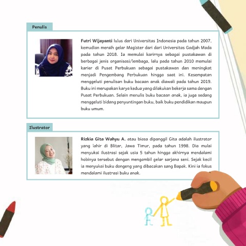 Halo, teman-teman! Pusat Perbukuan. Selain menulis buku bacaan anak, ia juga sedang