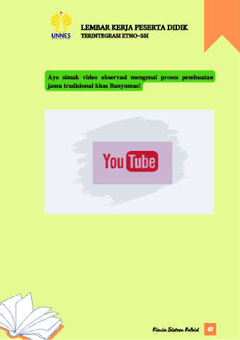 LEMBAR KERJA PESERTA DIDIK TERINTEGRASI ETNO-SSI Ayo simak video observasi mengenai proses pembuatan jamu tradisional khas Banyumas! Kimia Sistem Koloid 47
