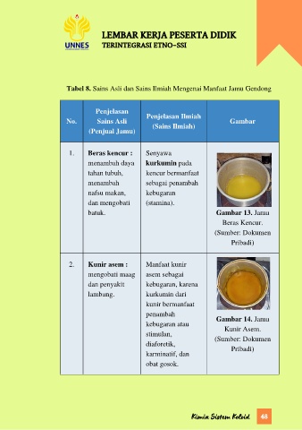 Tabel 8. Sains Asli dan Sains Ilmiah Mengenai Manfaat Jamu Gendong