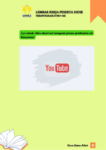 LEMBAR KERJA PESERTA DIDIK TERINTEGRASI ETNO-SSI Ayo simak video observasi mengenai proses pembuatan ciu Banyumas! Kimia Sistem Koloid 12