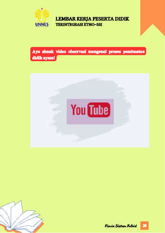 LEMBAR KERJA PESERTA DIDIK TERINTEGRASI ETNO-SSI Ayo simak video observasi mengenai proses pembuatan didih ayam! Kimia Sistem Koloid 28