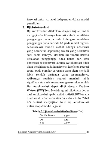 Tabel 4.5. Uji Autokorelasi (Durbin-Watson Test)