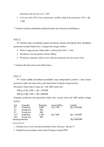 pemesanan kembali bahan baku x dengan data sebagai berikut: