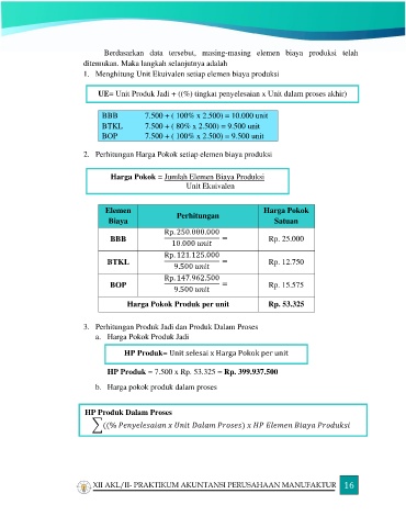 1. Menghitung Unit Ekuivalen setiap elemen biaya produksi