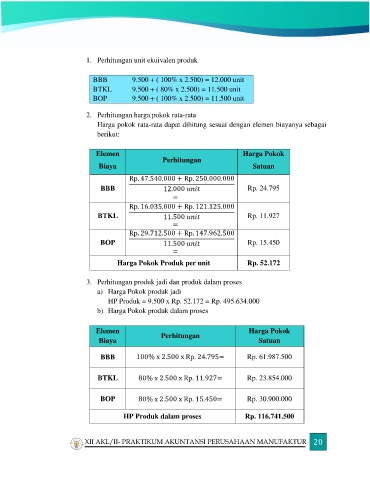 1. Perhitungan unit ekuivalen produk