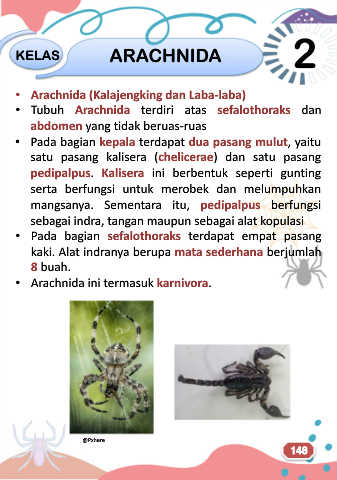 • Tubuh Arachnida terdiri atas sefalothoraks dan