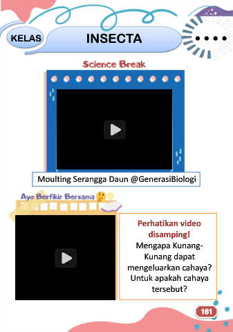 .... KELAS INSECTA Moulting Serangga Daun @GenerasiBiologi Perhatikan video disamping! Mengapa Kunang- Kunang dapat mengeluarkan cahaya? Untuk apakah cahaya tersebut? 161