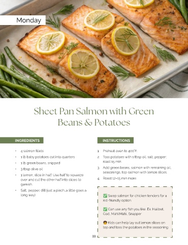 •   3 tbsp olive oil                                 3.  Add green beans, salmon with remaining oil,